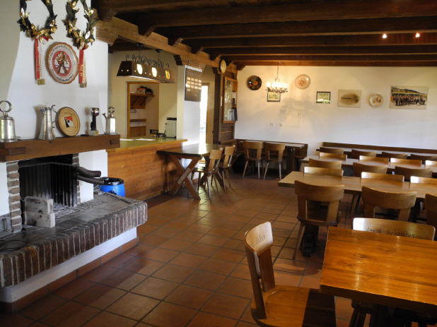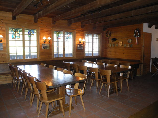 Platz für etwa 40 Personen, bei warmer Witterung auch auf der gedeckten Veranda. Mit Feuerstelle!